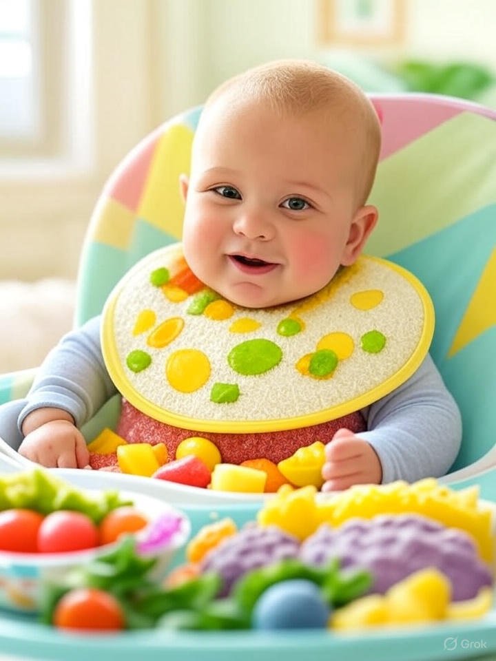 - Introduza aos poucos: Comece com uma refeição por dia, oferecendo um ou dois alimentos diferentes, como cenoura e maçã cozida, para explorar texturas. Sirva porções pequenas em um prato ou diretamente na bandeja da cadeira. Evite sal, açúcar, mel (devido ao risco de botulismo até 1 ano), e alimentos processados ou pegajosos (como pão com pasta). Aumente a frequência conforme o bebê se adapta, chegando a três refeições diárias.